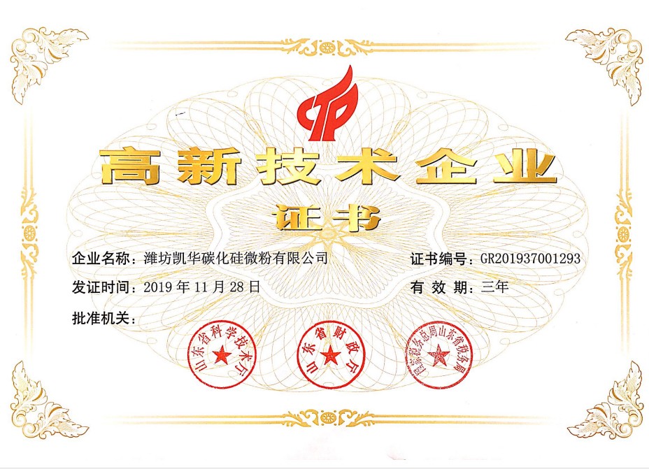 濰坊凱華碳化硅微粉有限公司成立于2002年,國家高新技術(shù)企業(yè),公司占地40畝,標準廠房19000平方,辦公樓、研發(fā)處2000平方,年生產(chǎn)能力3萬噸。一直從事陶瓷級微粉的生產(chǎn)銷售,所生產(chǎn)的超細碳化硅微粉具有純度高、粒形好、穩(wěn)定性強等特點,主要用于反應燒結(jié)、無壓燒結(jié)、硅碳棒新工藝、重結(jié)晶燒結(jié)、蜂窩陶瓷、機車制動裝置、研磨拋光、金屬防腐表面噴涂、納米隔熱保溫材料等領域。標準產(chǎn)品有:F240、F1200、W40、W28、W20、W14、W10、W7、W5、W3.5、 W2.5、W2、W1.5、W0.5、5S、D3E、100F、RS07、RS100及整形高密度系列綠碳化硅微粉......